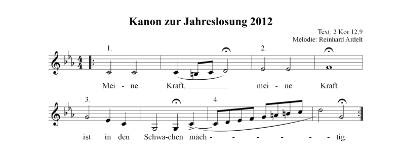Zu fast allen Jahreslosungen seit 2008 habe ich Kanons geschrieben. Bei Interesse an einer bestimmten Losung, die hier nicht gezeigt wird, schicken Sie mir bitte eine kurze Nachricht.